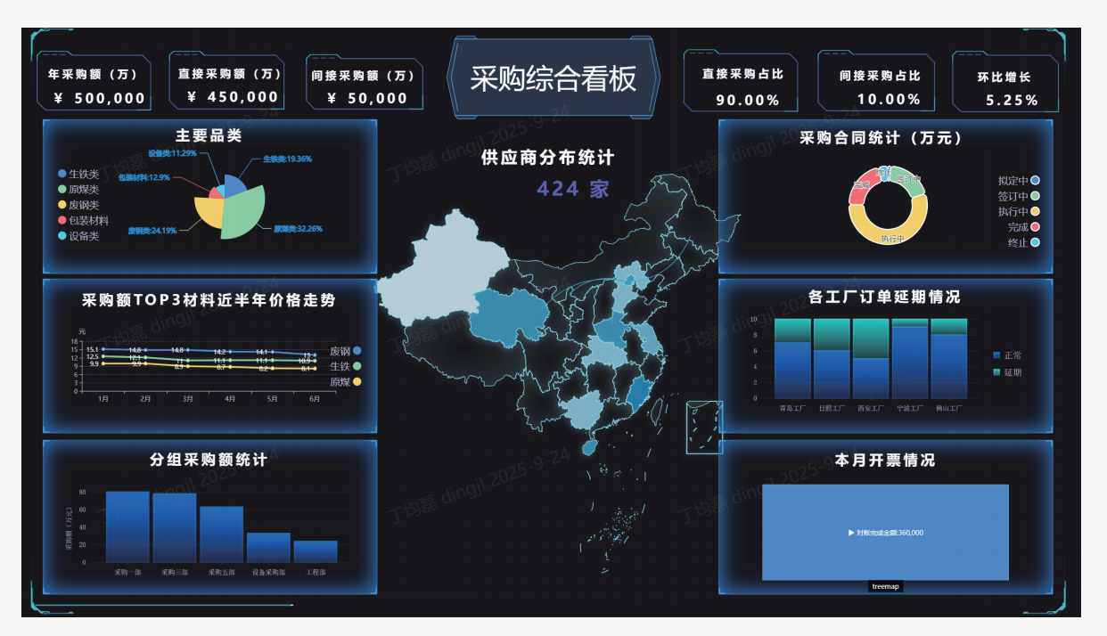 在传统的ERP里,数据往往是明细账表。老板或者采购总监想看一眼“这个季度采购成本到底降了多少?”或者“哪几家核心供应商总是拖延交货?”,往往需要业务员花好几天时间从系统里倒出Excel慢慢汇总,决策严重滞后。
