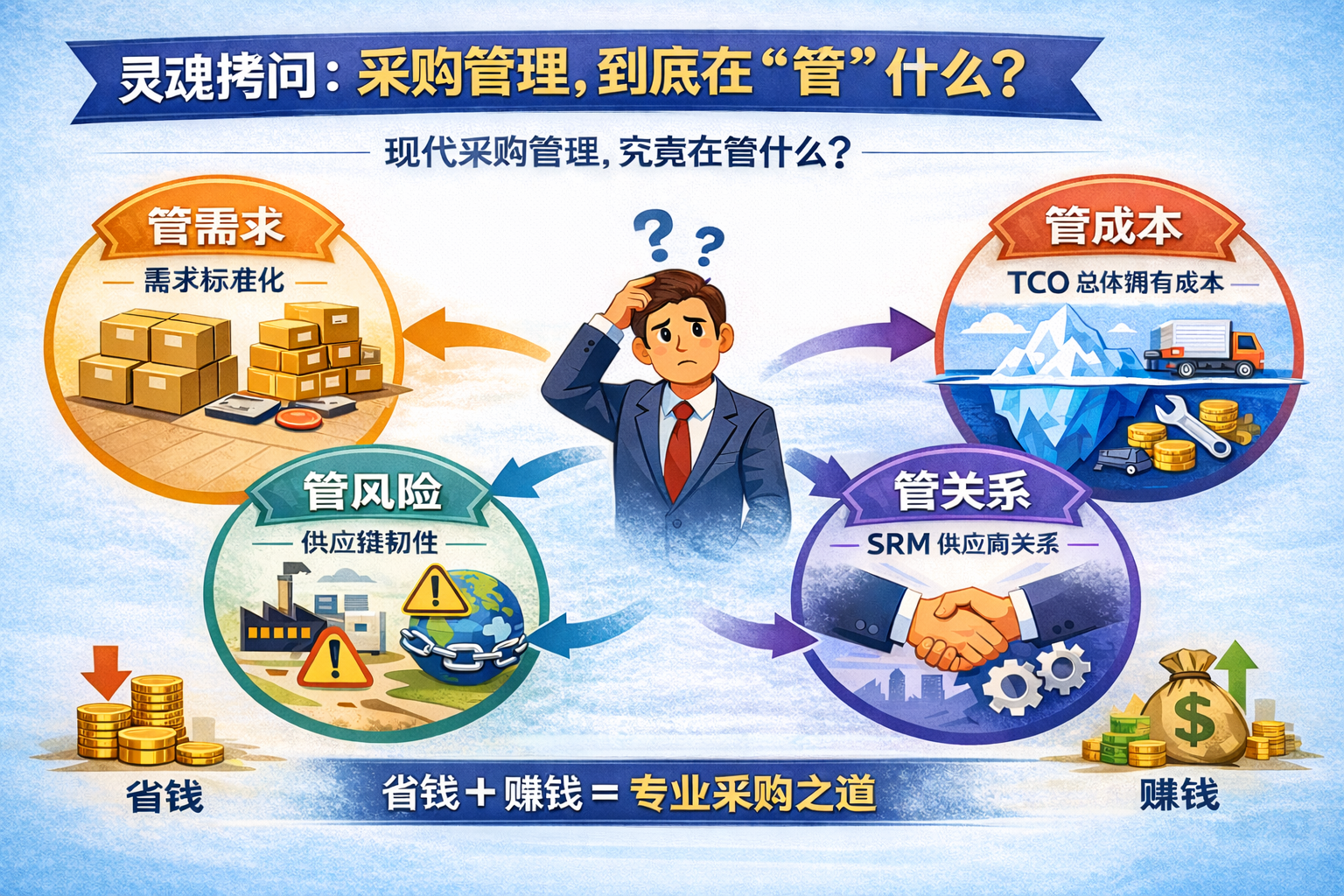 当企业痛定思痛,决定让采购走向专业化时,我们必须回答一个核心问题:现代采购管理,究竟在管什么?