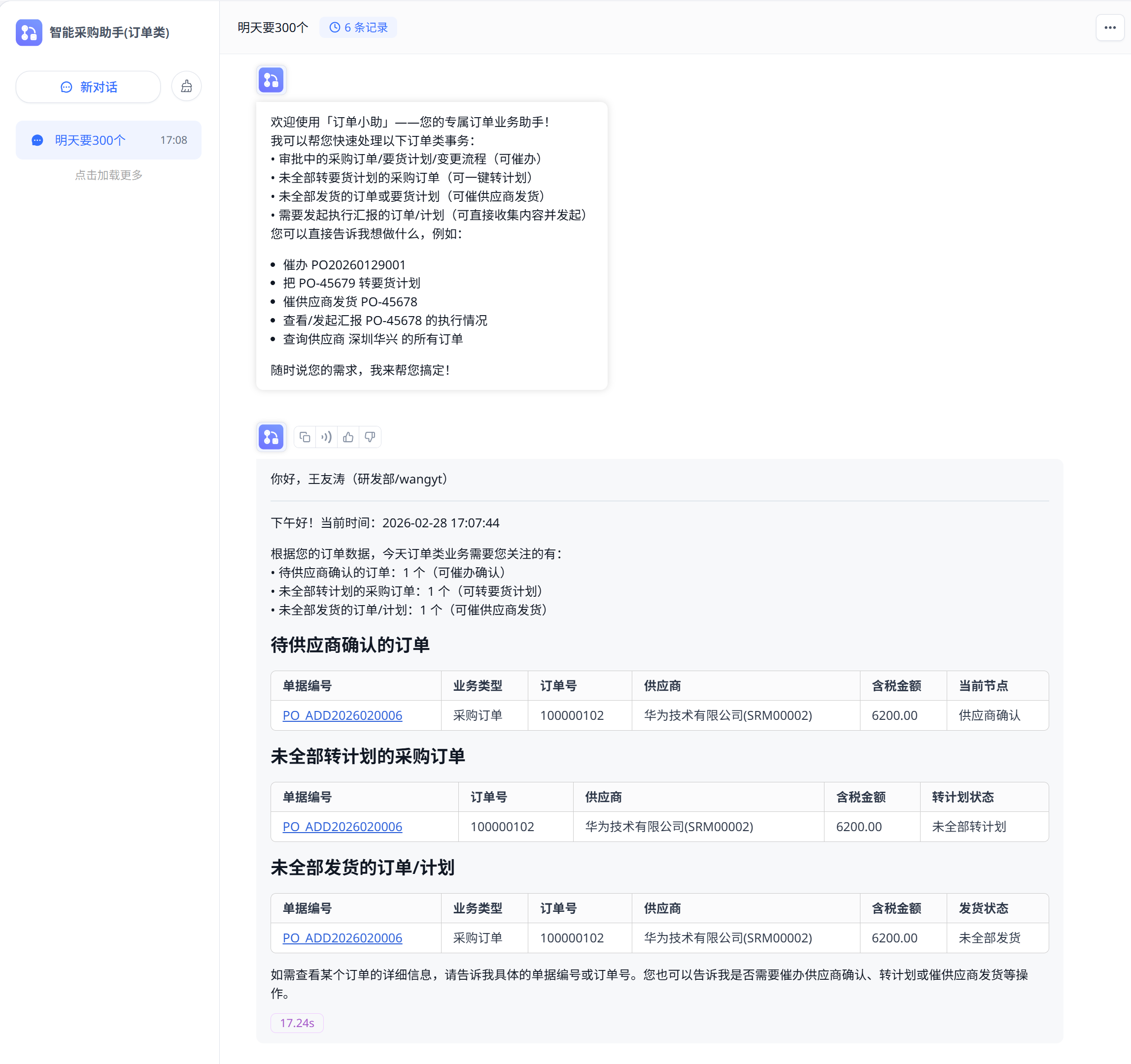 在传统的断点模式下,计划用Excel算完需求,发邮件给采购;采购去ERP系统里建单,再用微信去催供应商发货。这就是典型的低效与割裂。