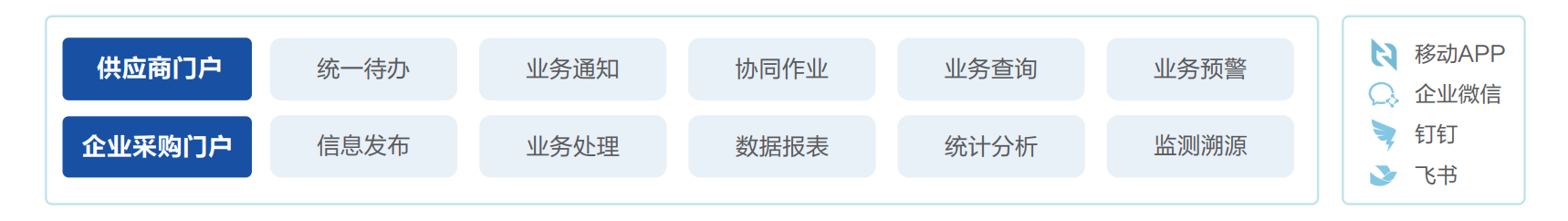 依托正远SRM独特的双门户设计,采购人员在企业内部端一键完成比价、寻源,供应商在外部端直接接单并反馈交期;到货信息又会实时推送到仓储的WMS系统进行入库准备。