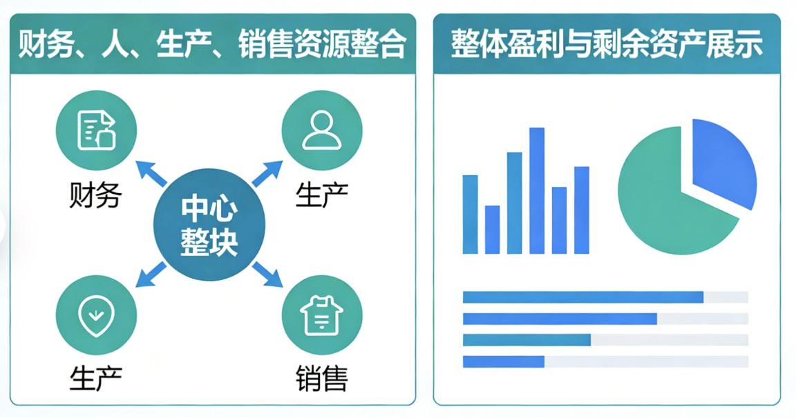 干什么用:把公司的财务、人、生产、销售都凑到一起。它最大的作用是资源整合,让你知道公司整体赚不赚钱、还剩多少资产。
