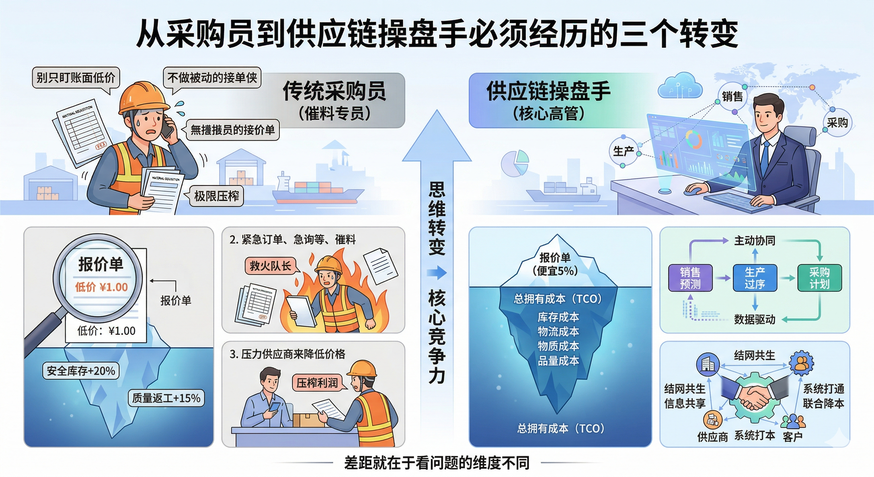 为什么有些采购干了十年还是个“催料专员”,而有的人却能成为企业的核心高管?差距就在于看问题的维度不同。