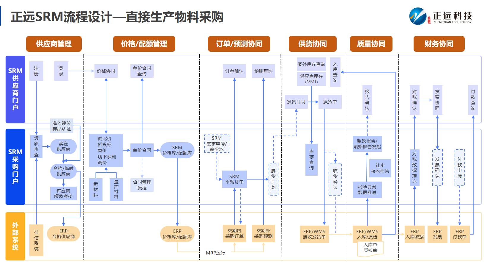 如果你的企业,采购品类多、供应商多,需要管控生产、供应链、财务,那 ERP、SRM 就是刚需 —— 它们能帮你打通核心业务,降本避风险。举个例子:正远的平台型 SRM 相比传统系统更灵活、上手简单,标准化功能+可精准匹配企业个性化管理需求,员工接受度高、易用性强。