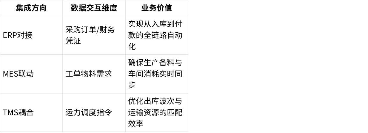 关键系统集成能力直接决定WMS的战略价值层级: