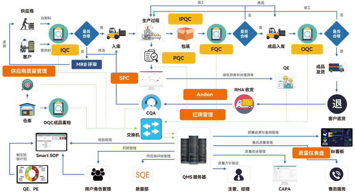 - 全流程覆盖:不局限于检验,而是管质量目标设定→原料入厂→生产过程→成品出厂→售后反馈的每一步;