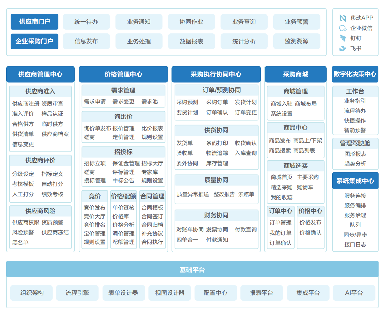 - 价格与配额管理:支持动态调价机制与配额分配,实现采购成本精细化管控;