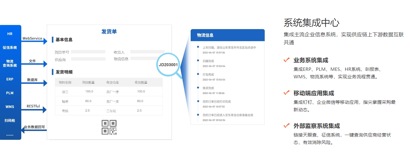 SRM系统绝不是一个孤立的系统,它必须成为连接企业内外的桥梁。在集成方面,ERP厂商虽然自家产品集成好,但对接异构系统时往往显得封闭。