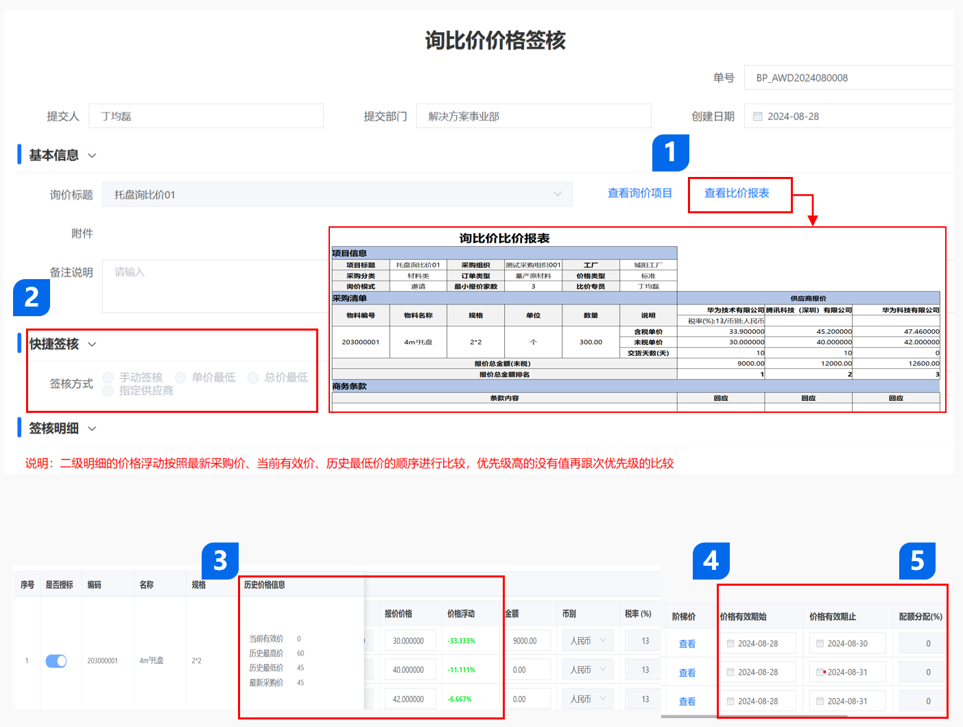 - 智能审批流拦截: 当采购员提交的定价低于或等于历史低价/基准价时,系统快速放行,提高流转效率;当提交的价格高于基准价,或涨幅超过设定阈值时,系统自动触发警报,强制要求提供合理的涨价说明,并自动升级审批流至更高级别的管理者(如CPO或CEO)进行特批。 这种“以规则代替人管”的机制,最大限度地排除了人情干扰,将“黑箱操作”的生存土壤连根拔起。