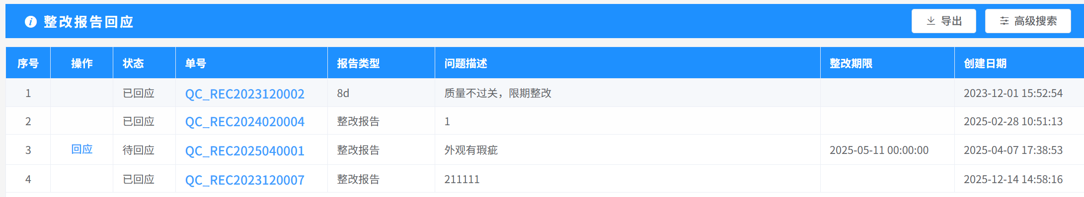 供应商在线接收整改单后,需详细说明根本原因、纠正措施及预防方案,并上传佐证资料。