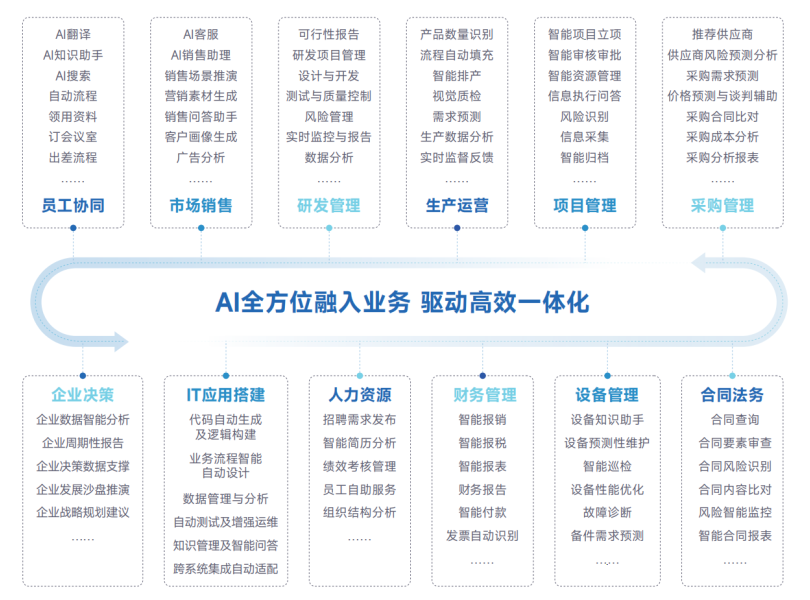 正远AI助力企业多全方位业务场景智能化提升,为企业提供从数据治理、流程优化到智能决策的一站式数字化转型方案。在生产制造、供应链管理、客户服务、营销推广、人力资源及财务风控等关键环节实现深度赋能,推动企业降本增效与创新增长。