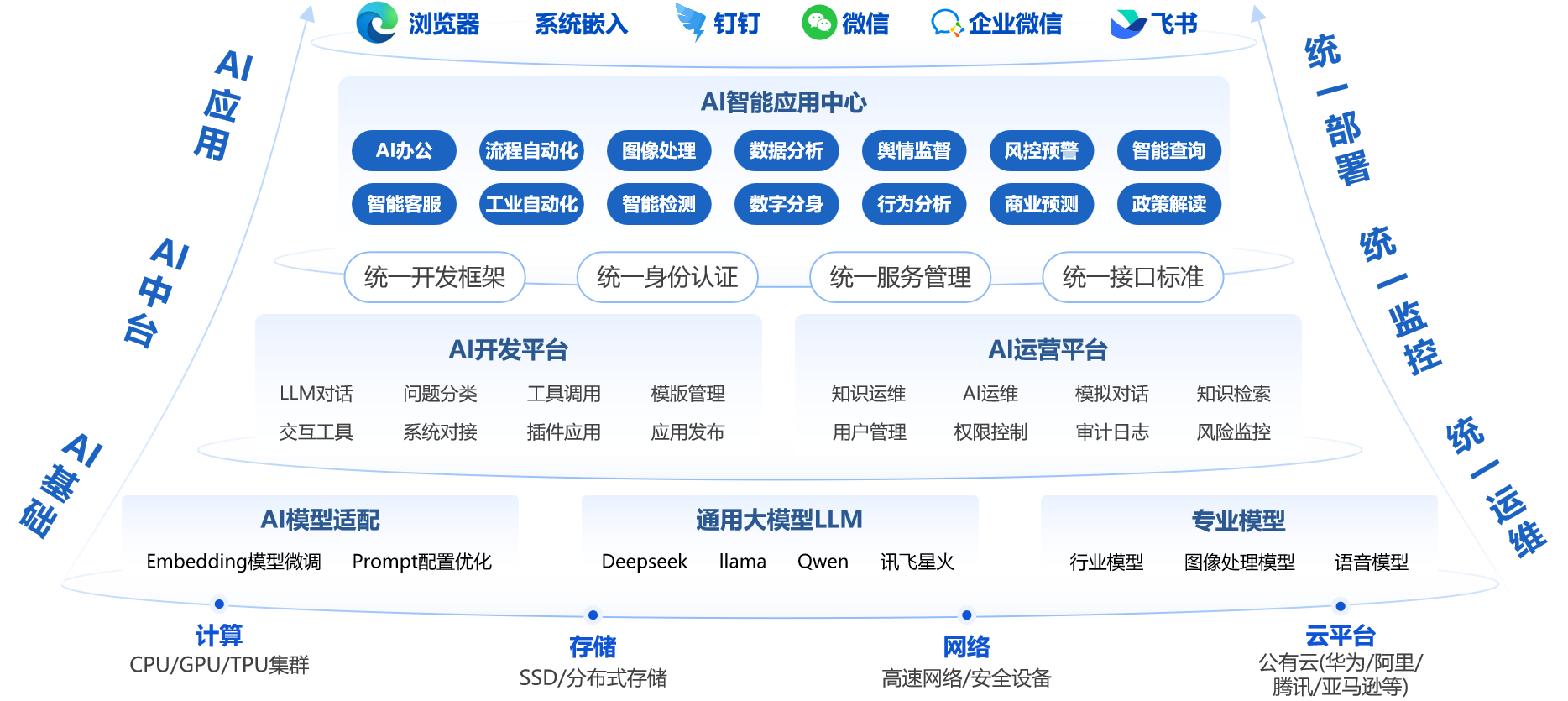 通过构建全栈式AI能力运营体系,实现资源集中管控、运维智能协同、应用敏捷部署及风险实时预警,为企业提供开箱即用的AI服务解决方案,助力客户规模化治理AI资产、优化资源利用率、降低全生命周期管理成本,并保障生产环境稳定性。